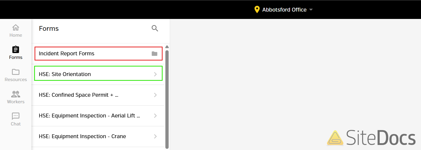 - Quick access to fill out a Daily Hazard Assessment or Job Site Inspection form.