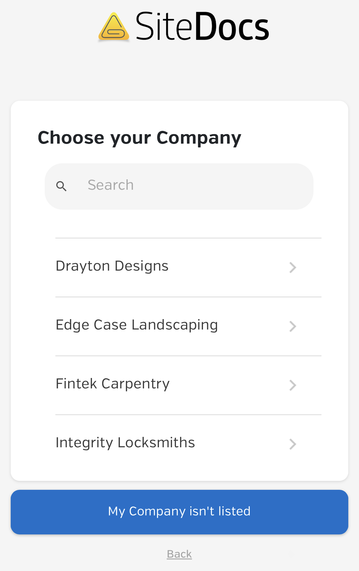 - Select your Company from the List
